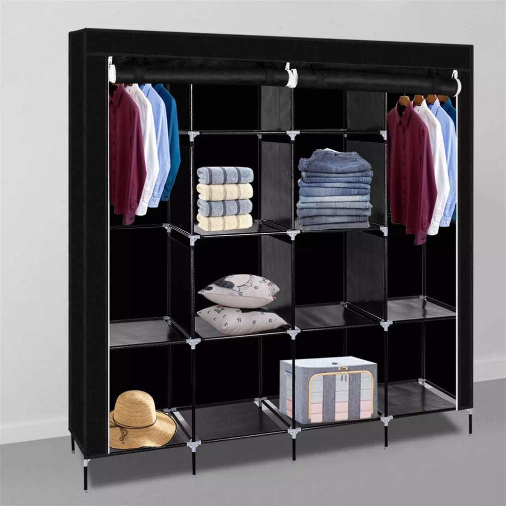 Large Canvas Fabric Wardrobe Portable Clothes Closet Storage Organizer Dustproof